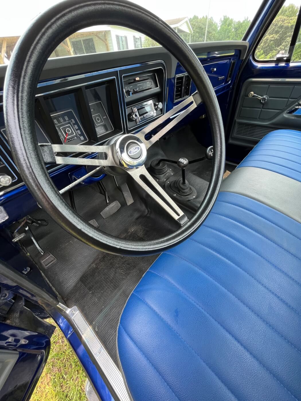 Ole Blue is a 1976 F250 that my dad bought around 77 or 78, not sure. He was a contractor, where he drove the truck to work every day. It was used to deer hunt and mud ride and of course when everyone else got stuck, they called Ole Blue to come pull them out. I drove it my junior year in high school where my buddies and I have done a lot of mud riding on the weekends. In 2010, my dad gave it to me and that’s when I started taking it apart and restoring it. Thanks to LMC Truck for all the parts, from new bed panels, doors, bumpers, grills, wiring harness and much more. Seat was covered by Kenny Long and paint was done by Jason Moore, both town locals. It doesn’t see the mud anymore, just to church on Sunday’s and local car shows where it has won quite a few awards. Thanks again to LMC Truck for keeping it on the road.